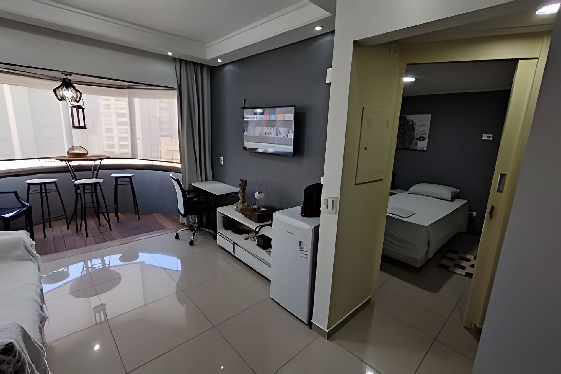 Não compartilhado com outros hóspedes Flat de 40m2 de Sala, Quarto, Banheiro e Box com chuveiro e varandas na sala e quarto. Completo com mobília, Tv Smart com Netflix, Ar-condicionado. Cozinha com fogão e utensílios, panelas, frigobar, liquidificador, cafeteira e micro-ondas para você preparar sua própria refeição. Tábua e ferro de passar. Secador de cabelo. Varal de pé para secar roupas, Ducha higiênica. Também tem serviço de quarto com arrumação diária feita pela camareira do condomínio É fornecido roupas de cama: lençóis, fronhas, cobertas ou Edredons e toalhas de banho e travesseiros Atendimento de recepção e garagem é 24hs com isso após ás 14h00, pode chegar qualquer horário. Wi-fi via roteador disponível no flat. No piso ( C ) cobertura tem academia básica e sauna seca. Pode receber visitas de amigo-as no flat qualquer hora. A VAGA DE GARAGEM FICA NO SUBSOLO DO PRÉDIO, ONDE É COBRADO APENAS UMA TAXA DE R$ 10,00 POR DIÁRIA, PAGAMENTO DIRETO NO LOCAL E NÃO PRECISA RESERVAR. Não marcada sujeito a uso de manobrista. Nas redondezas por cerca de 8 minutos consegui ir andando do flat a cada local como: Metrô São Joaquim; Hospitais: A. C. Camargo (Câncer Center), Adventista, Osvaldo Cruz e LeForte; FMU, Unip Vergueiro, Uninove, Unicsul, Nikkey Palace, Free Palace, Lesques Brasil, Casa de Portugal, G. loja maçonica, Teatro Liberdade, Bunkyo e Sociedade Br da Cultura japonesa e Hakka Eventos. 2 minutos andando até o Bunkyo e Sociedade brasileira da cultura Japonesa e Hakka Eventos; Fácil acesso ao Brás e 25 de março e avenida Paulista. Na medida do possível costumo ser flexível no horário de check-in e check-out (Consulte). Entrada a partir das 14h00; Saída até meio dia 12h00.1 cama de casal e 1 cama de solteiroNa medida do possível costumo ser flexível no horário de check-in e check-out (Consulte).