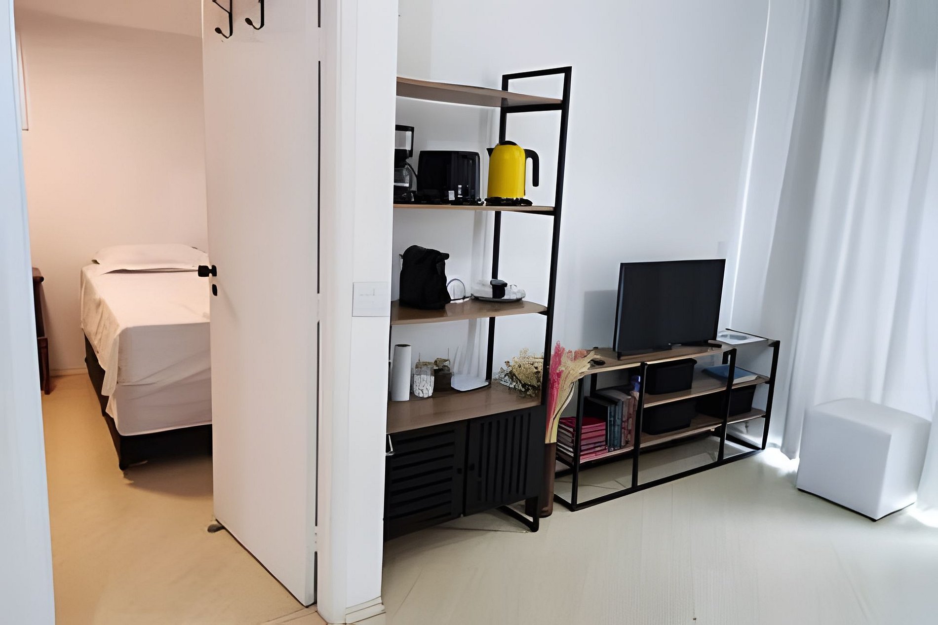 Não compartilhado com outros hóspedes Flat de 40m2 de Sala, Quarto, Banheiro e Box com chuveiro e varandas na sala e quarto. Completo com mobília, Tv Smart com Netflix, Ar-condicionado. Cozinha com fogão e utensílios, panelas, frigobar, liquidificador, cafeteira e micro-ondas para você preparar sua própria refeição. Tábua e ferro de passar. Secador de cabelo. Varal de pé para secar roupas, Ducha higiênica. Também tem serviço de quarto com arrumação diária feita pela camareira do condomínio É fornecido roupas de cama: lençóis, fronhas, cobertas ou Edredons e toalhas de banho e travesseiros Atendimento de recepção e garagem é 24hs com isso após ás 14h00, pode chegar qualquer horário. Wi-fi via roteador disponível no flat. No piso ( C ) cobertura tem academia básica e sauna seca. Pode receber visitas de amigo-as no flat qualquer hora. A VAGA DE GARAGEM FICA NO SUBSOLO DO PRÉDIO, ONDE É COBRADO APENAS UMA TAXA DE R$ 10,00 POR DIÁRIA, PAGAMENTO DIRETO NO LOCAL E NÃO PRECISA RESERVAR. Não marcada sujeito a uso de manobrista. Nas redondezas por cerca de 8 minutos consegui ir andando do flat a cada local como: Metrô São Joaquim; Hospitais: A. C. Camargo (Câncer Center), Adventista, Osvaldo Cruz e LeForte; FMU, Unip Vergueiro, Uninove, Unicsul, Nikkey Palace, Free Palace, Lesques Brasil, Casa de Portugal, G. loja maçonica, Teatro Liberdade, Bunkyo e Sociedade Br da Cultura japonesa e Hakka Eventos. 2 minutos andando até o Bunkyo e Sociedade brasileira da cultura Japonesa e Hakka Eventos; Fácil acesso ao Brás e 25 de março e avenida Paulista. Na medida do possível costumo ser flexível no horário de check-in e check-out (Consulte). Entrada a partir das 14h00; Saída até meio dia 12h00.1 cama de casal e 1 sofá cama casal. Na medida do possível costumo ser flexível no horário de check-in e check-out (Consulte).