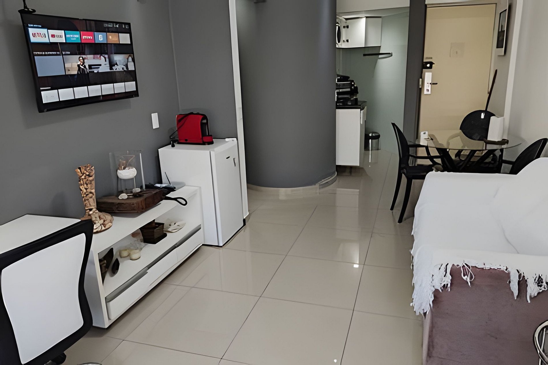 Não compartilhado com outros hóspedes Flat de 40m2 de Sala, Quarto, Banheiro e Box com chuveiro e varandas na sala e quarto. Completo com mobília, Tv Smart com Netflix, Ar-condicionado. Cozinha com fogão e utensílios, panelas, frigobar, liquidificador, cafeteira e micro-ondas para você preparar sua própria refeição. Tábua e ferro de passar. Secador de cabelo. Varal de pé para secar roupas, Ducha higiênica. Também tem serviço de quarto com arrumação diária feita pela camareira do condomínio É fornecido roupas de cama: lençóis, fronhas, cobertas ou Edredons e toalhas de banho e travesseiros Atendimento de recepção e garagem é 24hs com isso após ás 14h00, pode chegar qualquer horário. Wi-fi via roteador disponível no flat. No piso ( C ) cobertura tem academia básica e sauna seca. Pode receber visitas de amigo-as no flat qualquer hora. A VAGA DE GARAGEM FICA NO SUBSOLO DO PRÉDIO, ONDE É COBRADO APENAS UMA TAXA DE R$ 10,00 POR DIÁRIA, PAGAMENTO DIRETO NO LOCAL E NÃO PRECISA RESERVAR. Não marcada sujeito a uso de manobrista. Nas redondezas por cerca de 8 minutos consegui ir andando do flat a cada local como: Metrô São Joaquim; Hospitais: A. C. Camargo (Câncer Center), Adventista, Osvaldo Cruz e LeForte; FMU, Unip Vergueiro, Uninove, Unicsul, Nikkey Palace, Free Palace, Lesques Brasil, Casa de Portugal, G. loja maçonica, Teatro Liberdade, Bunkyo e Sociedade Br da Cultura japonesa e Hakka Eventos. 2 minutos andando até o Bunkyo e Sociedade brasileira da cultura Japonesa e Hakka Eventos; Fácil acesso ao Brás e 25 de março e avenida Paulista. Na medida do possível costumo ser flexível no horário de check-in e check-out (Consulte). Entrada a partir das 14h00; Saída até meio dia 12h00.1 cama de casal e 1 cama de solteiroNa medida do possível costumo ser flexível no horário de check-in e check-out (Consulte).